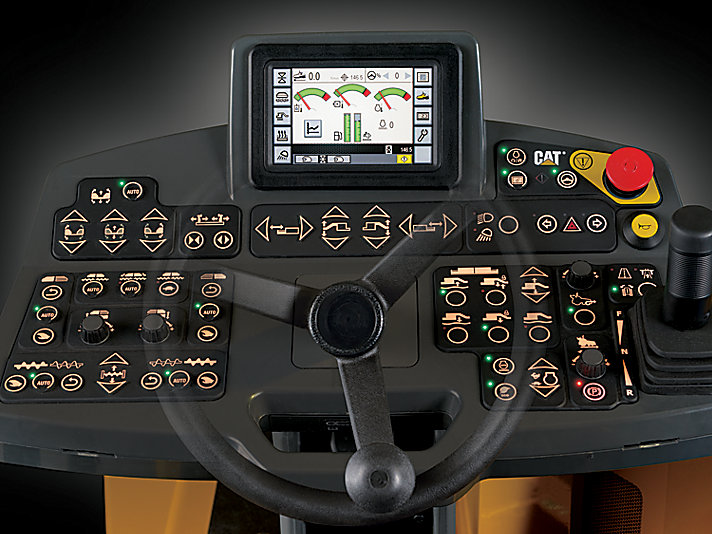 - Система регулирования уклона Cat (поставляется отдельно), встроенная в дисплеи машины и вибробруса, гарантирует максимальную производительность оператора.