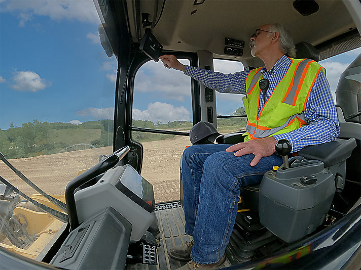 - Индикатор уклона помогает упростить работу, показывая основной и поперечный наклон машины прямо на дисплее.