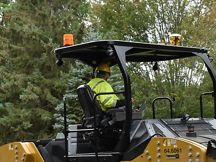 - Счетчик проходов и картирование температурных зон сочетают инфракрасные датчики температуры с GPS-картографированием, чтобы информировать оператора о текущей температуре асфальта, положении машины, количестве проходов и покрытии слоев.